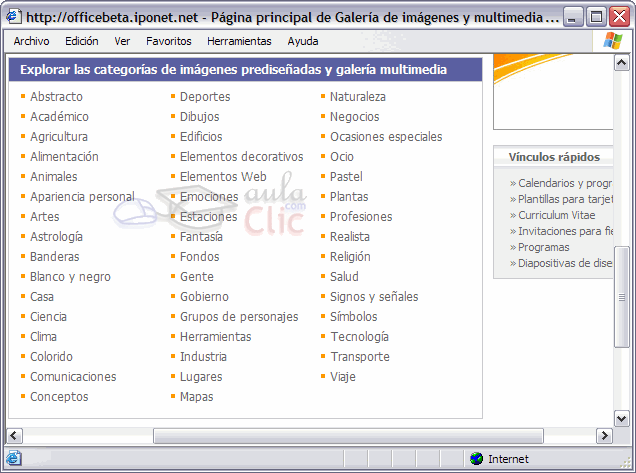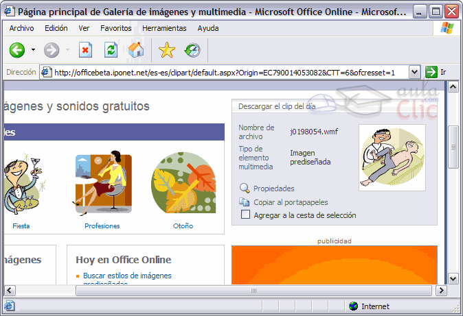clips o buscar más imágenes en Internet, en la página