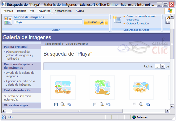 clips o buscar más imágenes en Internet, en la página